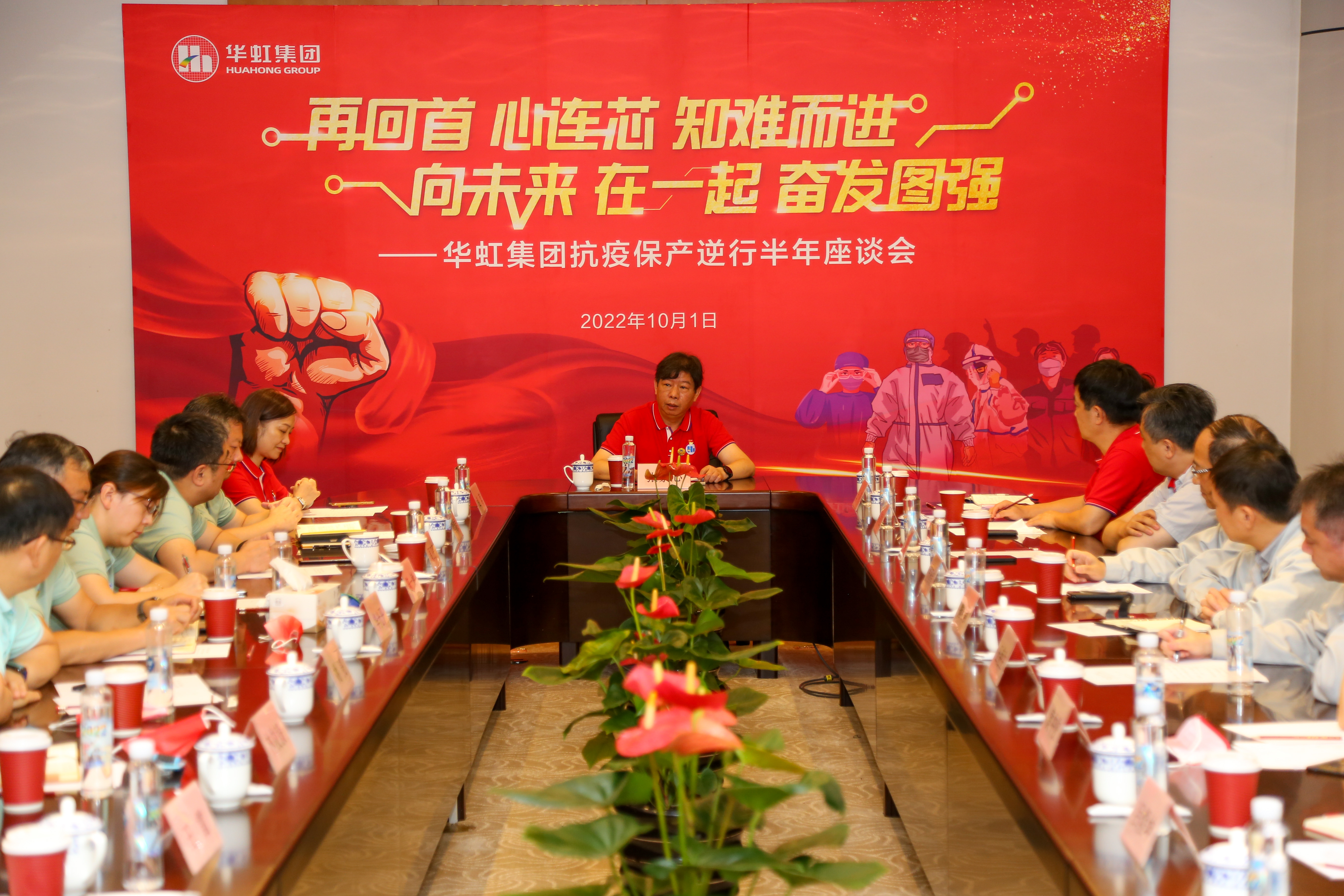 两大制造平台抗疫保产逆行半年座谈会。上午,在华虹集团发源地——华虹一厂召开“再回首,心连芯,知难而进;向未来,在一起,奋发图强”两大制造平台抗疫保产逆行半年座谈会。集团领导及两大制造平台的党政工团负责人、工厂厂长齐聚一堂,深情回顾,凝聚共识,激情展望踔厉未来,进行了充分交流。